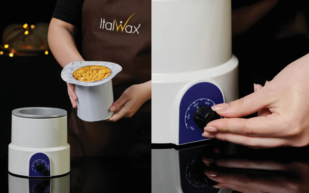 Placez la quantité nécessaire de Italwax Full Body Wax dans le chauffe-cire. Faites chauffer jusqu’à environ 40°C.